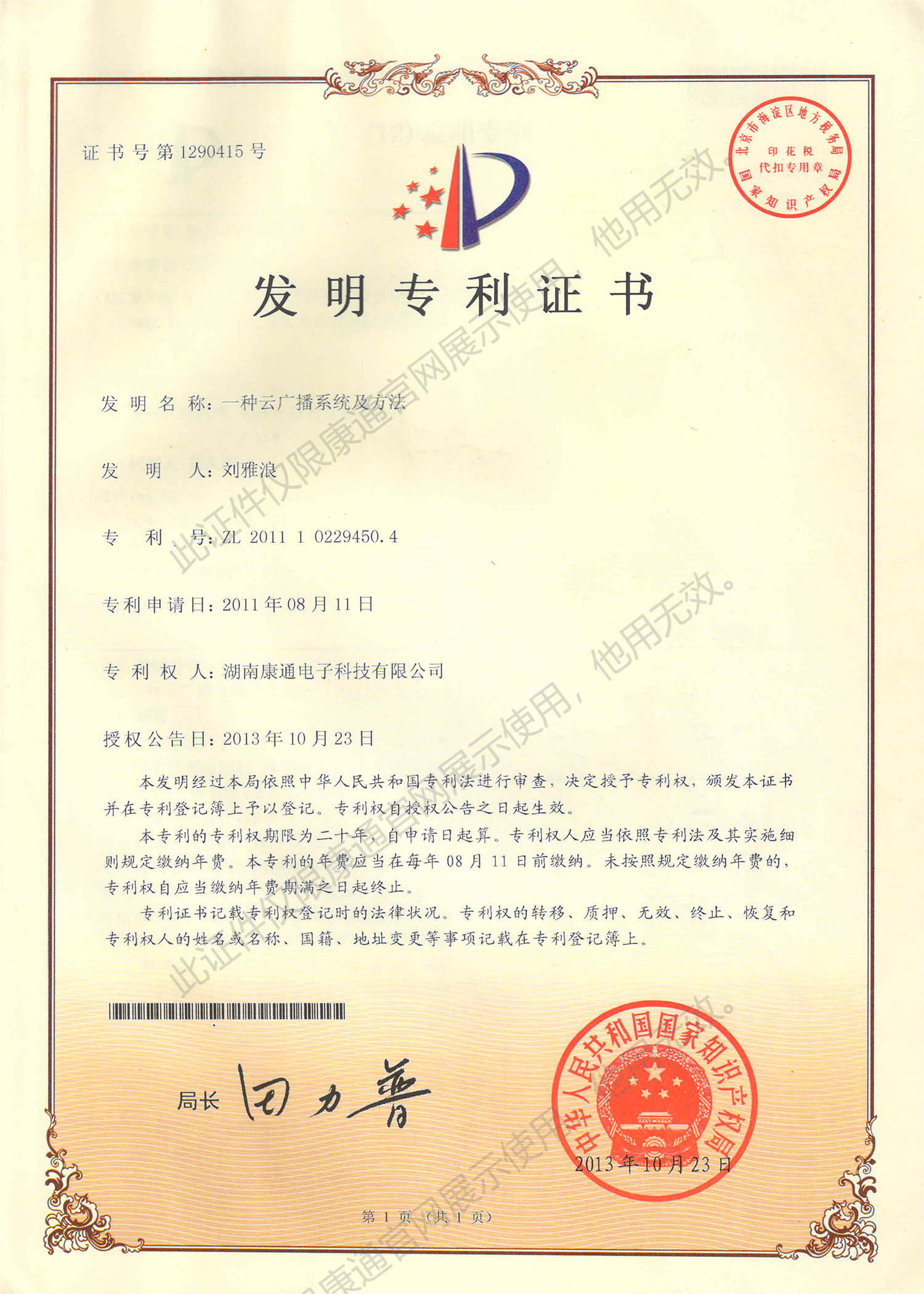 公司推出“云廣播”。康通云廣播系統成功應用于內蒙古村村通廣播,并與華為公司達成戰略合作伙伴。