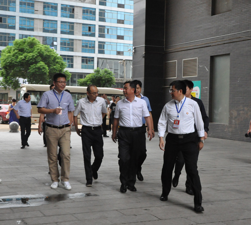 市委副書記徐宏源(左二)一行領(lǐng)導(dǎo)蒞臨我公司,劉雅浪董事長熱情接待